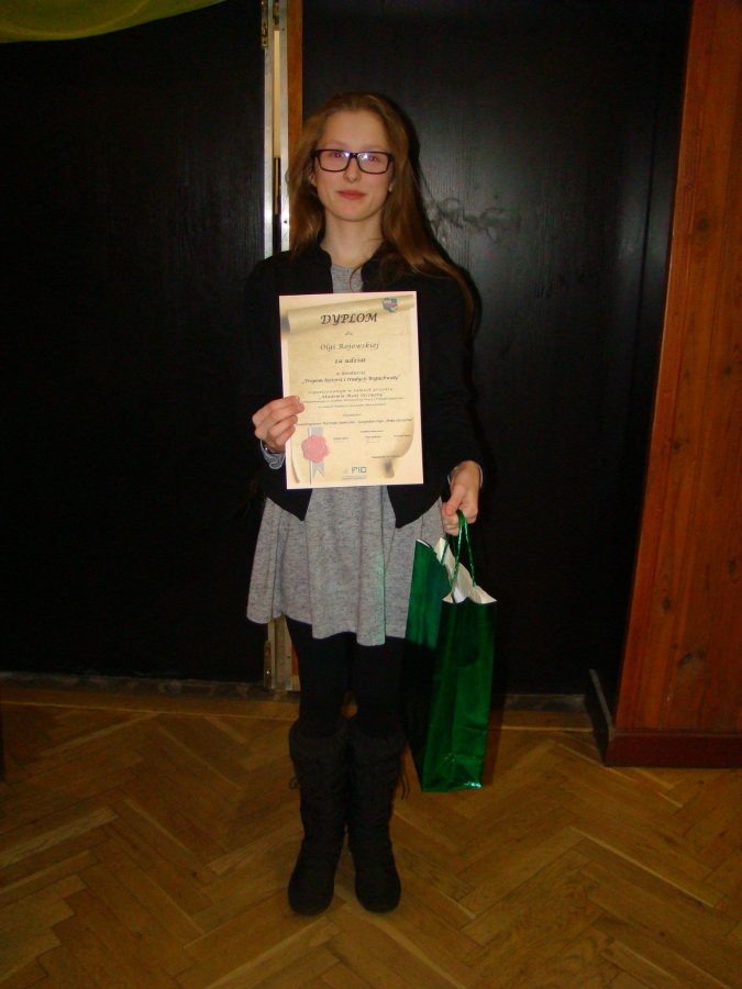 DSC00835Uczennica piątej klasy, Olga Rojowska zajęła drugie miejsce w konkursie historycznym „Tropem Historii i tradycji Boguchwały” organizowanym przez Stowarzyszenie Rozwoju Społeczno-Gospodarczego „Mała Ojczyzna”.