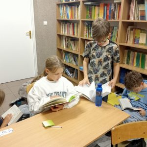 Tydzień przed zajęciami kulinarnymi miała miejsce uczta duchowa. Uczniowie godzinę wychowawczą spędzili przeglądając oraz czytając książki w bibliotece szkolnej. Udaliśmy się tam za sprawą samorządu klasowego. Przedstawiciele klasy wpadli na pomysł, aby właśnie w ten sposób celebrować święto, o którym dowiedzieli się kilka dni wcześniej, a mianowicie, iż październik to Międzynarodowy Miesiąc Bibliotek Szkolnych.