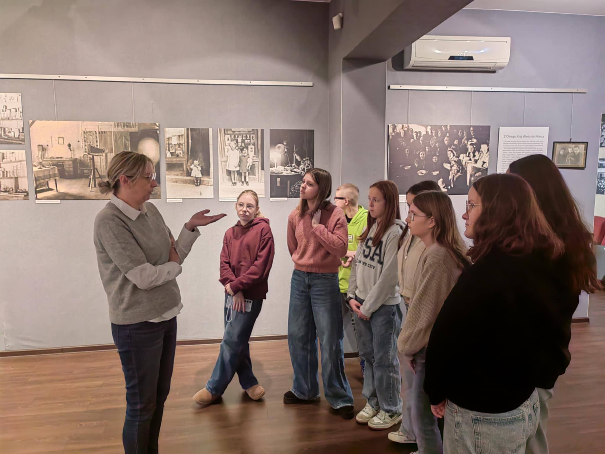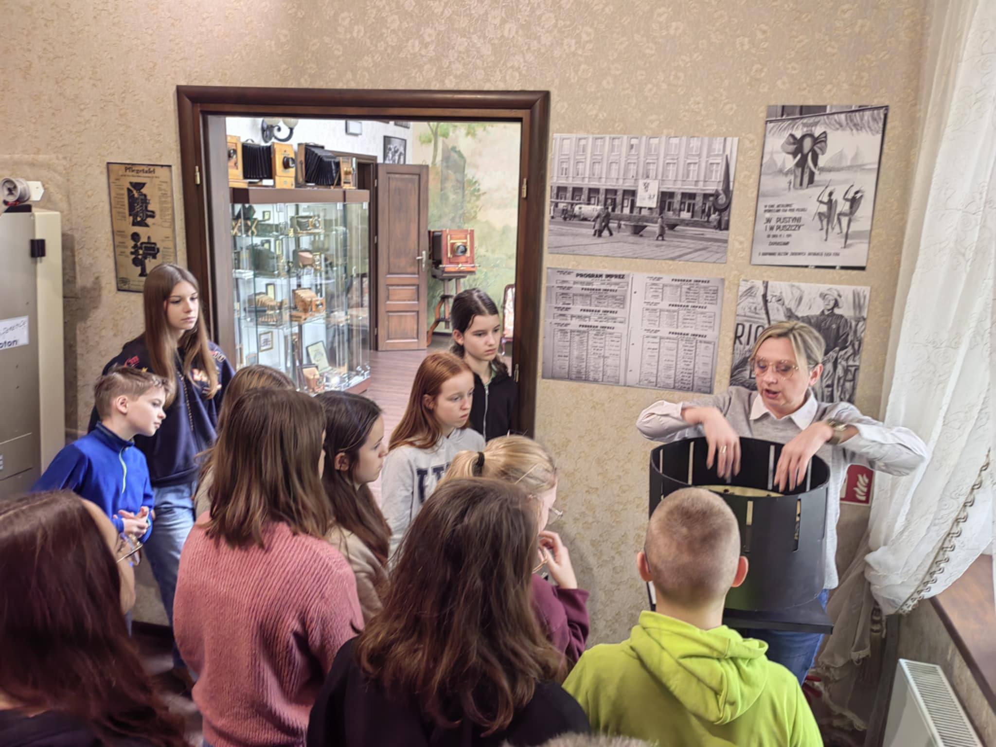 Najciekawsze były zdjęcia mieszkańców Mielca z różnych okresów — niektóre pokazywały codzienne życie, inne ważne wydarzenia, a wszystkie pozwalały nam lepiej zrozumieć historię miasta i ludzi, którzy tu mieszkali. Przewodnik w przystępny sposób opowiadał o sprzęcie, technikach i ciekawostkach związanych z fotografią, dzięki czemu wizyta była interesująca nie tylko dla miłośników zdjęć.