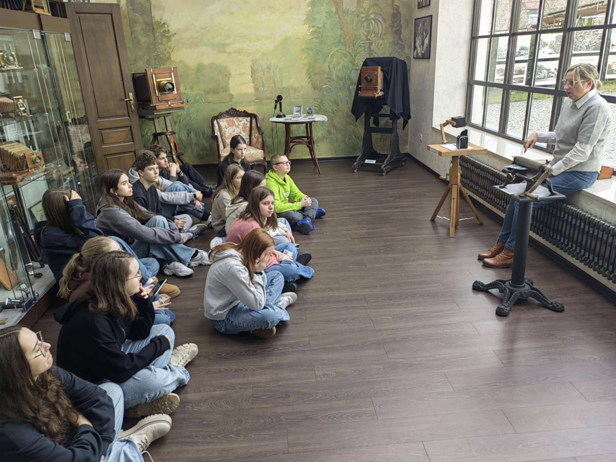 Wizyta w muzeum fotografii Jadernówka była jednym z ciekawszych punktów naszej wycieczki. Już od wejścia czuć było specyficzną atmosferę miejsca — spokojną, trochę nostalgiczną, ale jednocześnie pełną ciekawych historii. Przechodząc od sali do sali, mogliśmy zobaczyć stare aparaty, fotografie sprzed dziesiątek lat oraz dawne atelier fotograficzne, które pokazywało, jak wyglądała praca fotografa kiedyś.