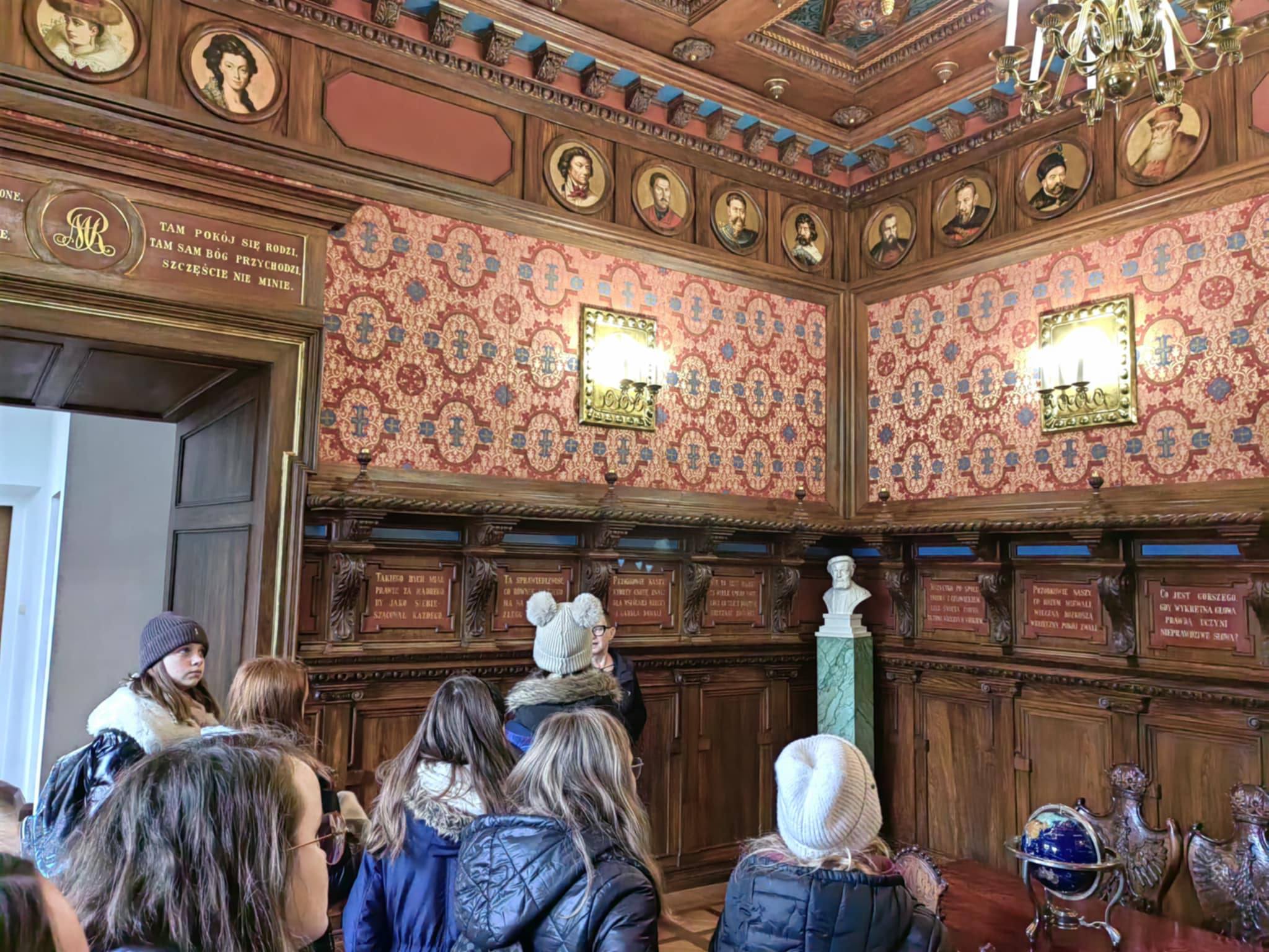 Przewodnik opowiadał z pasją o rodach, które zamieszkiwały zamek, o jego przebudowach i tajemnicach związanych z minionymi epokami. Słuchaliśmy z zaciekawieniem, odkrywając, jak bogata i barwna potrafi być historia jednego miejsca. Wnętrza zachwycały nie tylko swoją architekturą, ale też atmosferą — mieszaniną elegancji, tradycji i spokoju.