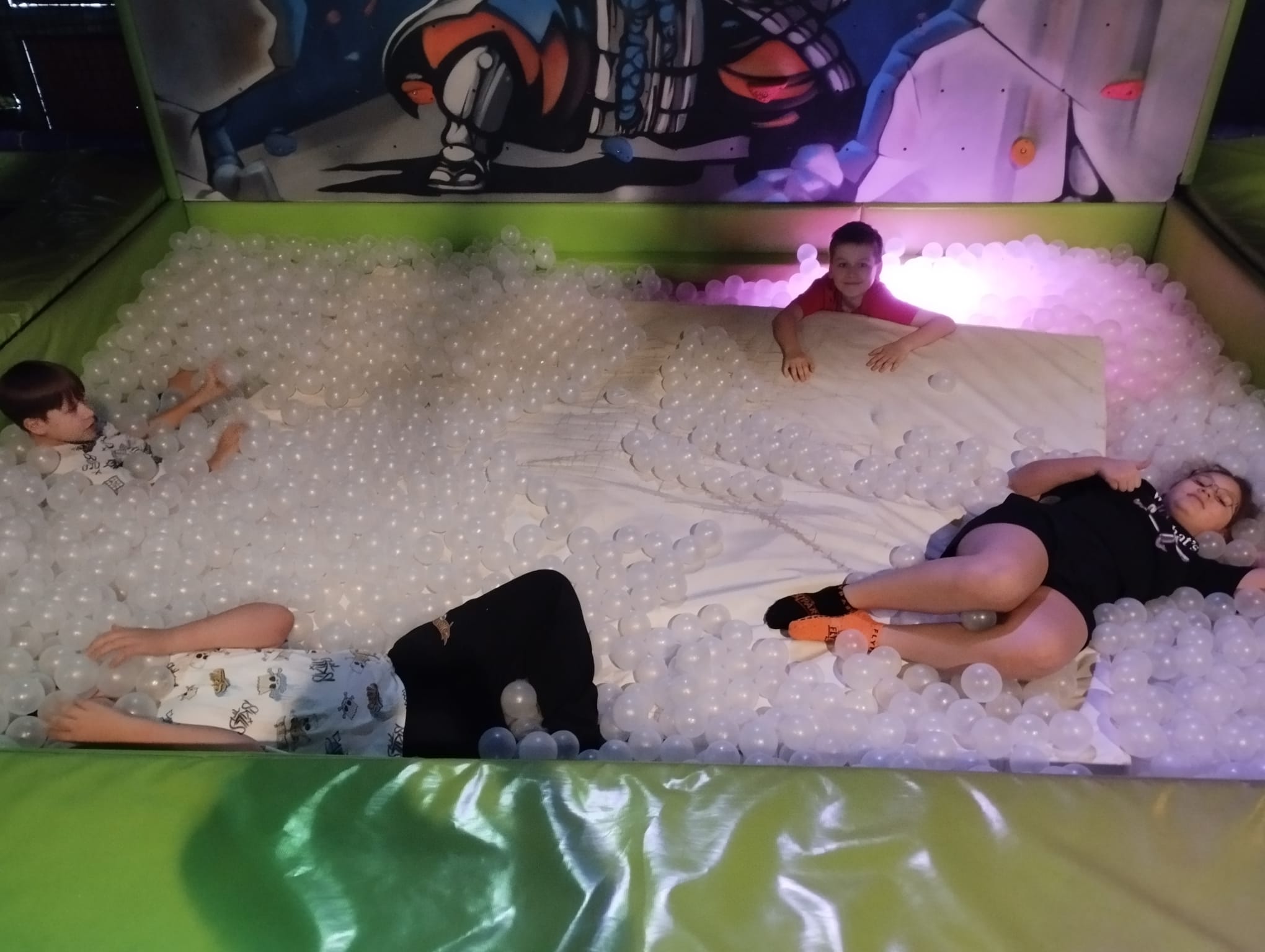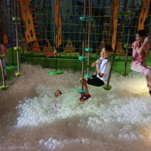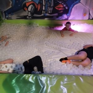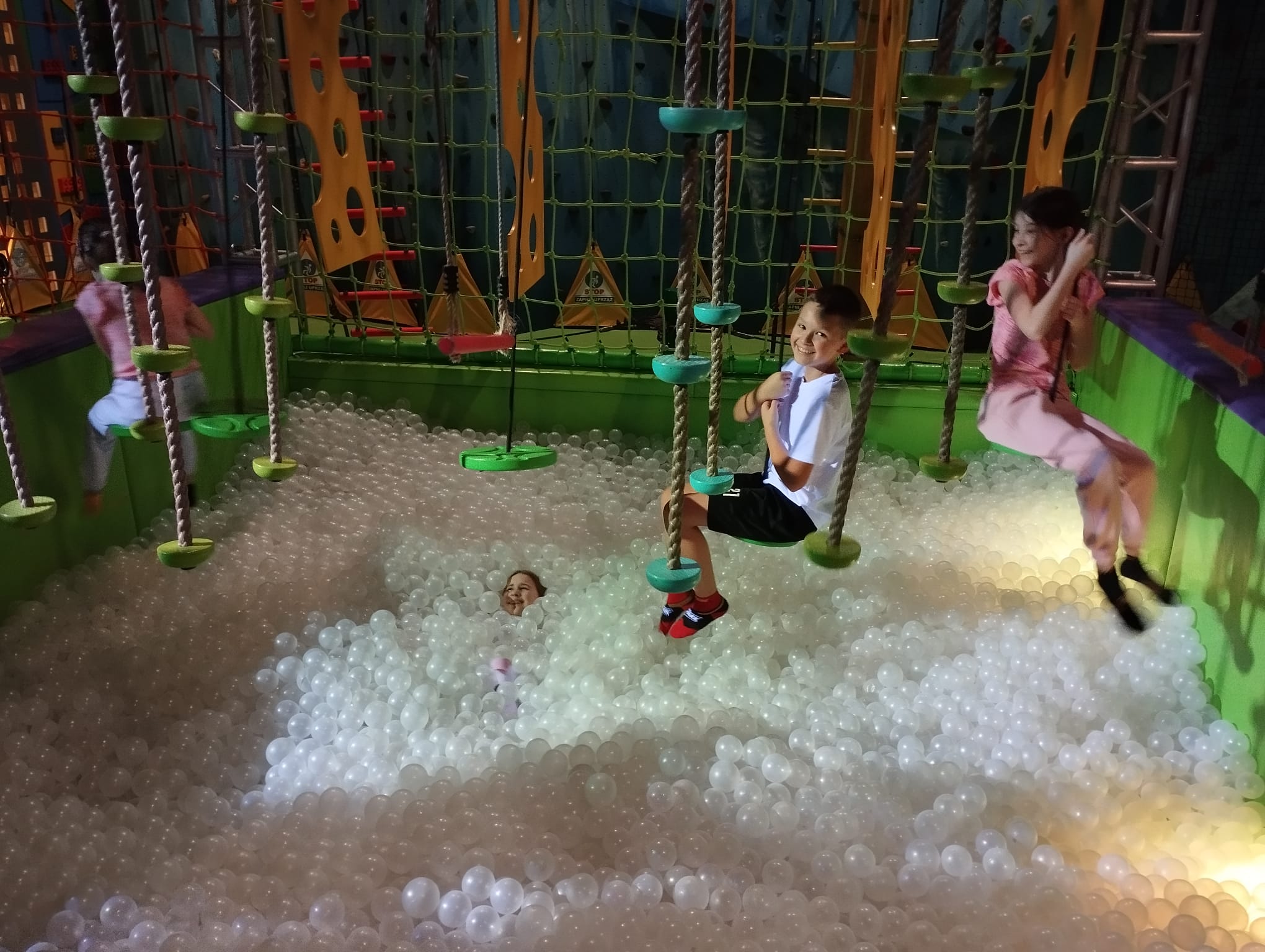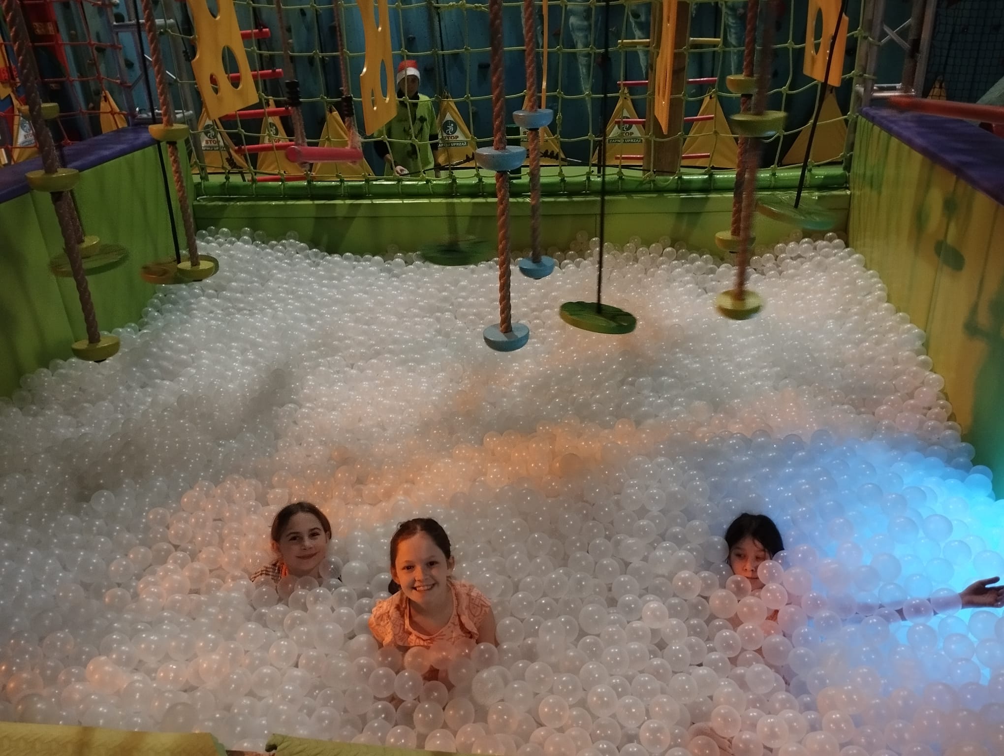 Skarpety antypoślizgowe, bidon z wodą, obowiązkowa rozgrzewka i już wszyscy byli gotowi na aktywne spędzenie przedpołudnia. 90 minut beztroskiego szaleństwa minęło szybko, niczym dziesięciominutowa przerwa. W tym czasie uczniowie korzystali z różnego rodzaju trampolin, nurkowali w basenach wypełnionych piłeczkami i gąbkami. Pokonywali także tory przeszkód oraz ścieżki akrobatyczne. Dzieci testowały wszystkie atrakcje z wielkim entuzjazmem. Natomiast jeśli ktoś poczuł chwilowe zmęczenie, to mógł… porozmawiać z Mikołajem lub odpocząć, siedząc przez chwilę na jego tronie. Chyba nawet zdarzyła się próba kradzieży prezentów, które święty miał obok siebie, ale cisza, o tym nikomu nie mówimy :-)