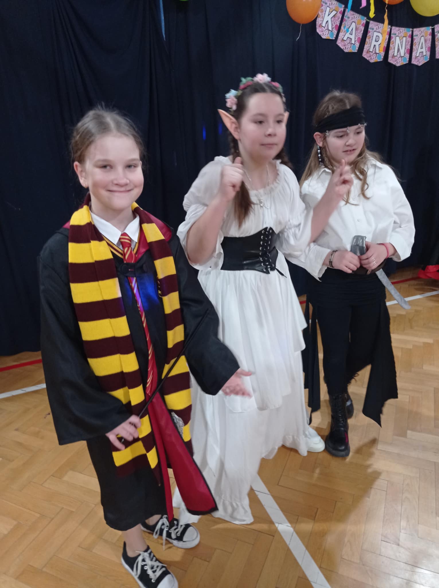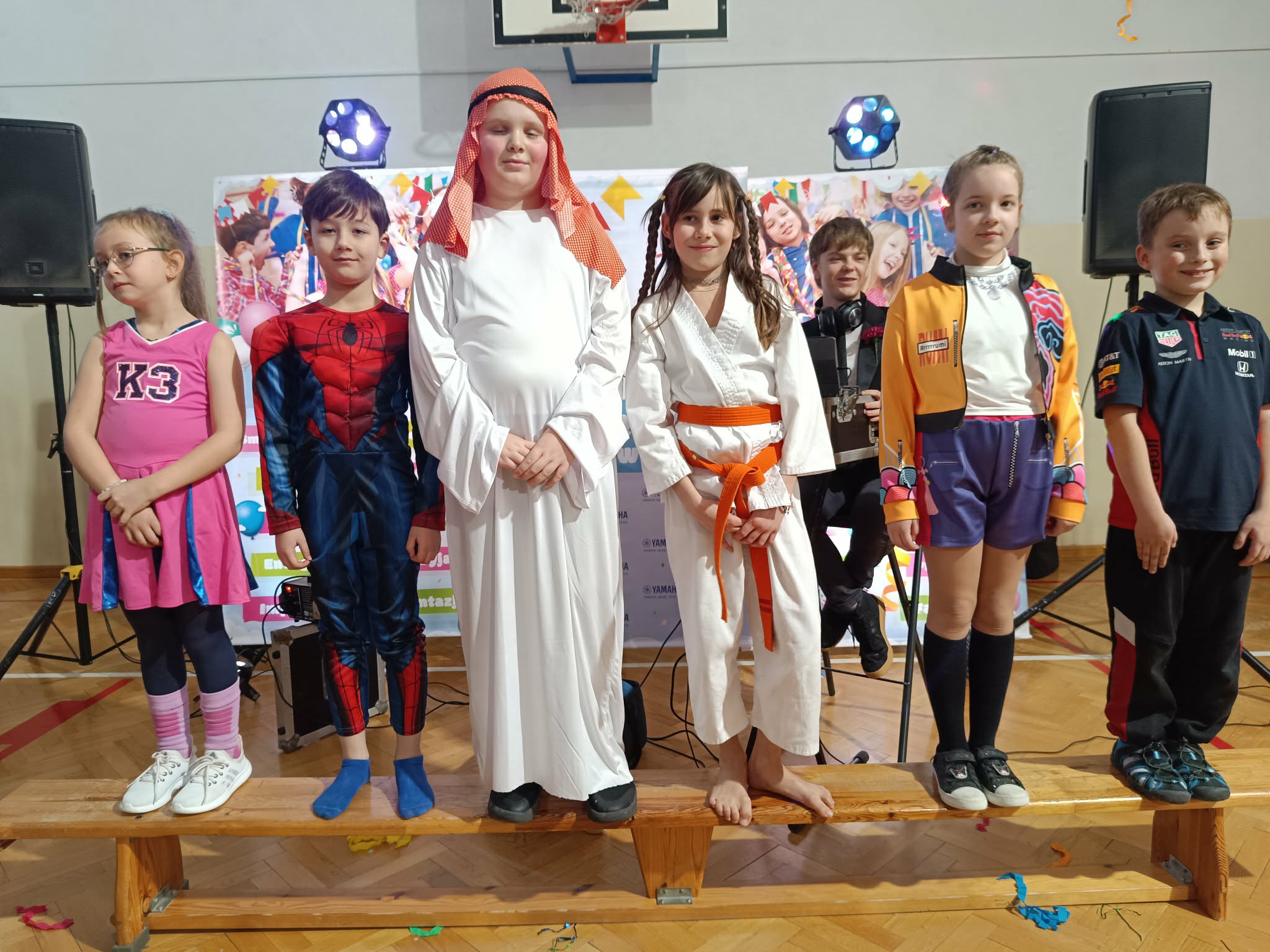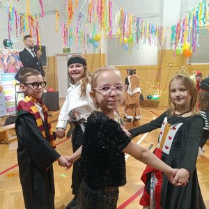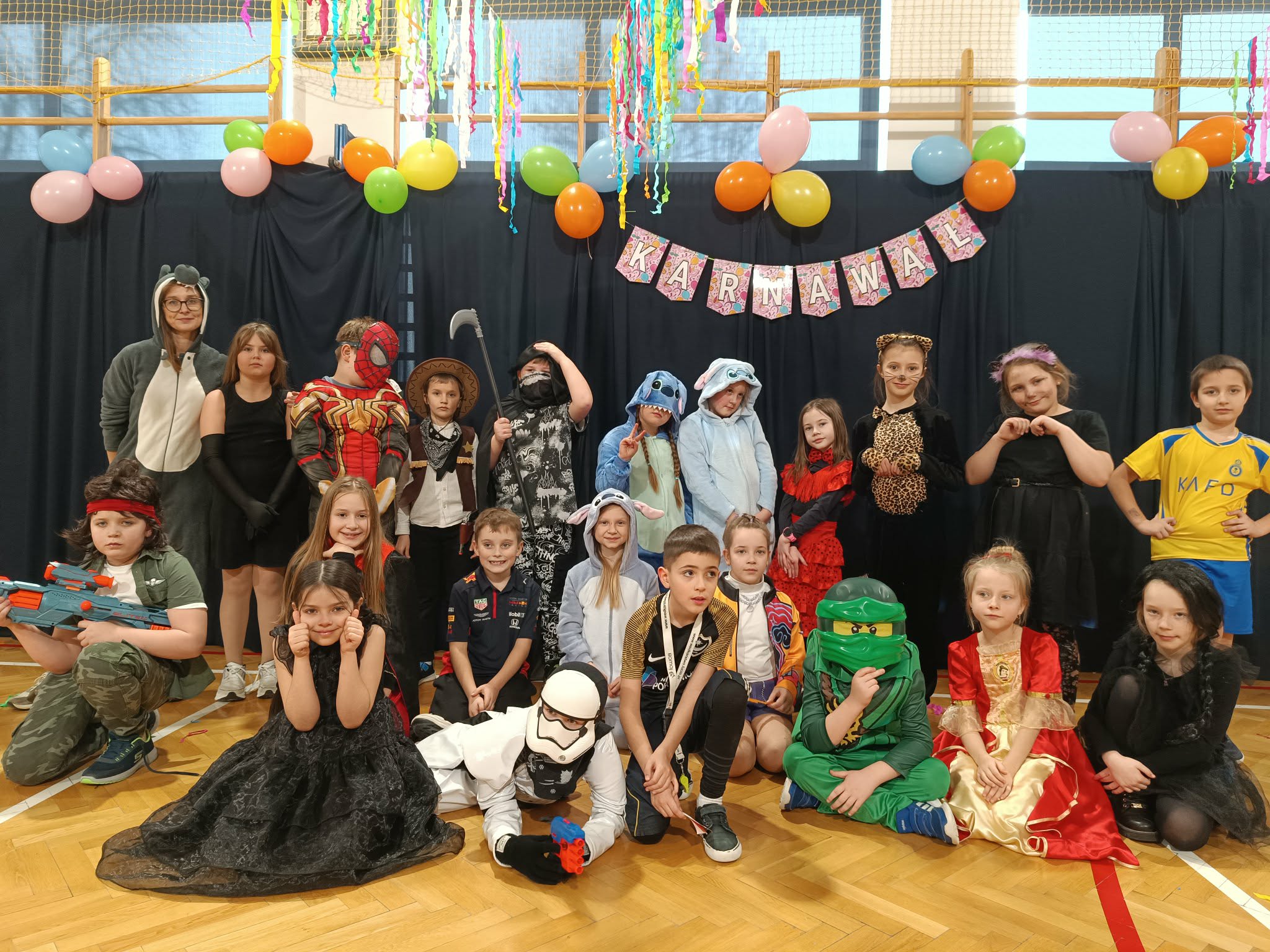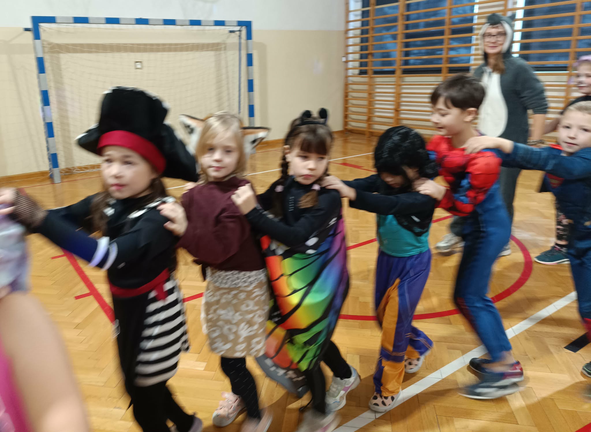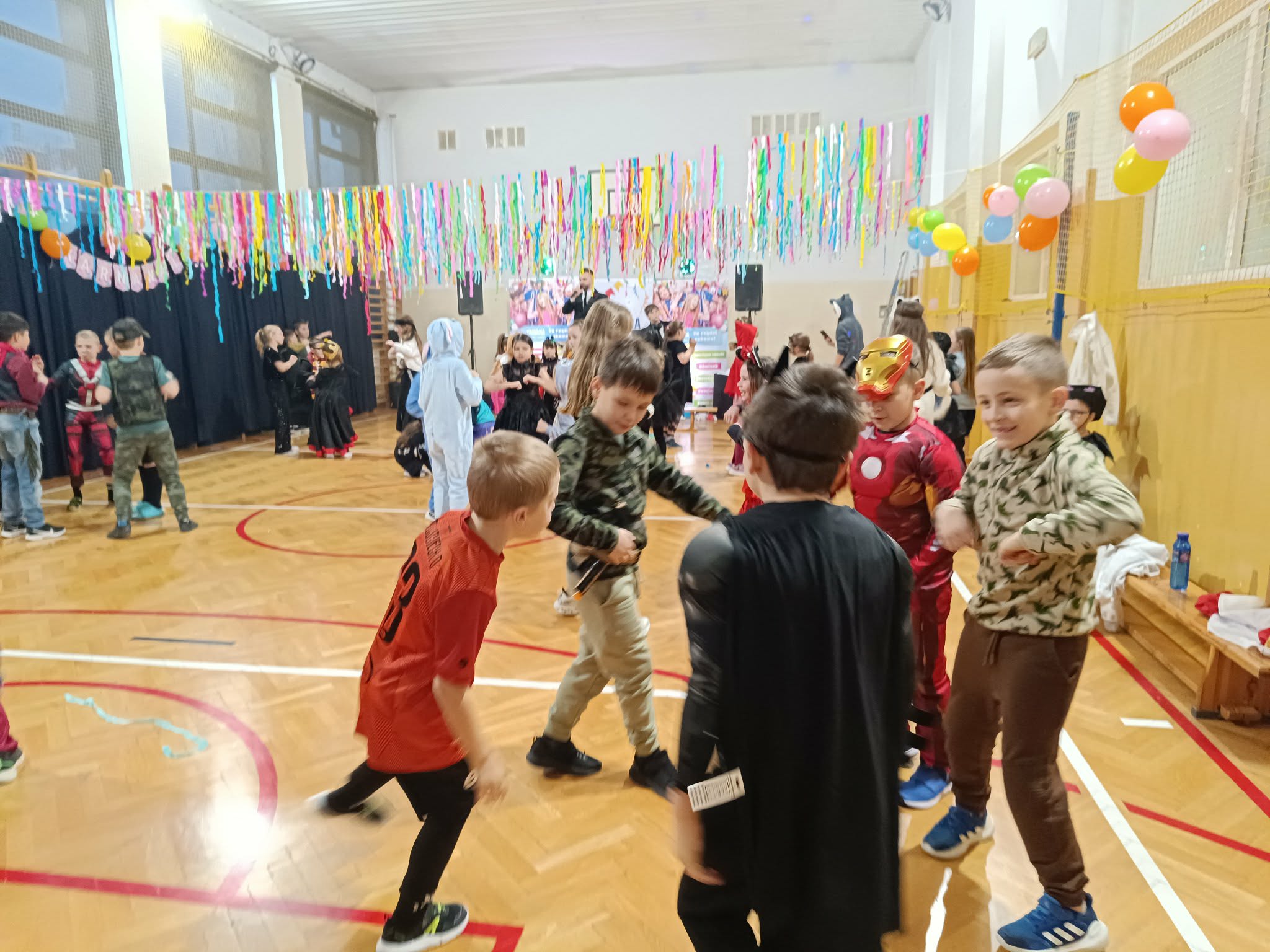 We wtorek, 13 stycznia w naszej szkole odbył się długo oczekiwany bal karnawałowy. Przystrojona sala gimnastyczna zamieniła się w prawdziwą salę balowa, a uczniowie wcielili się w nowe role. Na parkiecie pojawili się bohaterowie znanych bajek i filmów tj. Czerwony Kapturek, Harry Poter, Hermiona, Wednesday, księżniczki, piraci, wróżki, ale również stróże prawa, superbohaterowie i słodkie zwierzaki.  Karnawałowe kreacje zaskakiwały, budził podziw, a nawet przerażenie. Jak przystało na prawdziwy bal, nie zabrakło pląsów i zabaw tanecznych. Były pociągi, korowody, kółeczka i tańce w parach. Dzieci chętnie brały  udział w  konkursach, a zwycięzcy nagradzani byli gromkimi brawami. Ten radosny dzień wszyscy zachowają w pamięci, co najmniej do przyszłego karnawału.