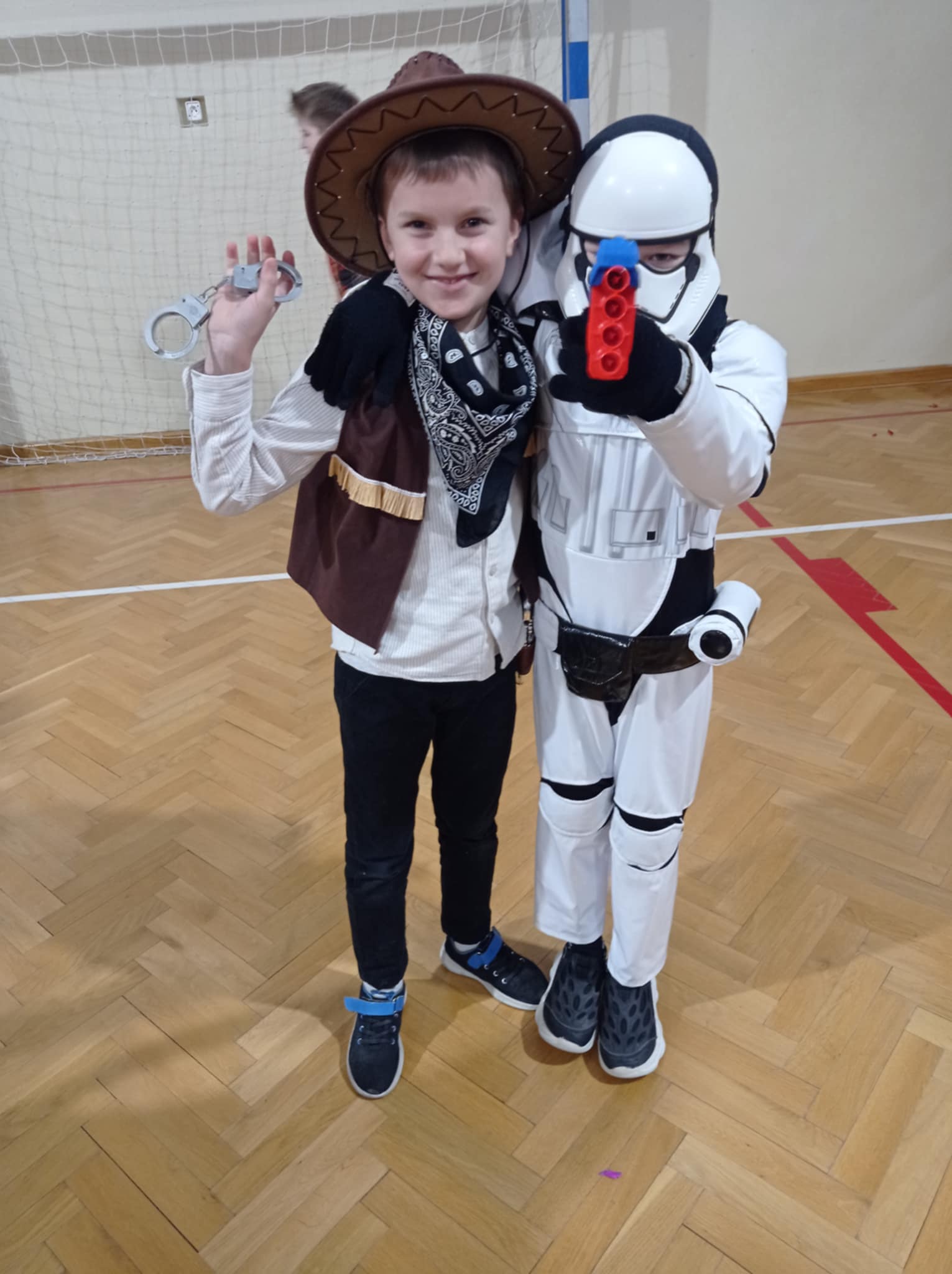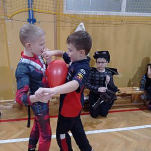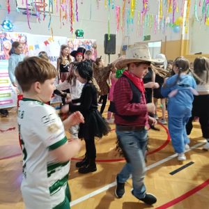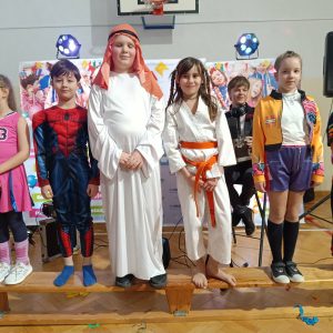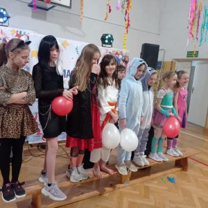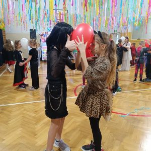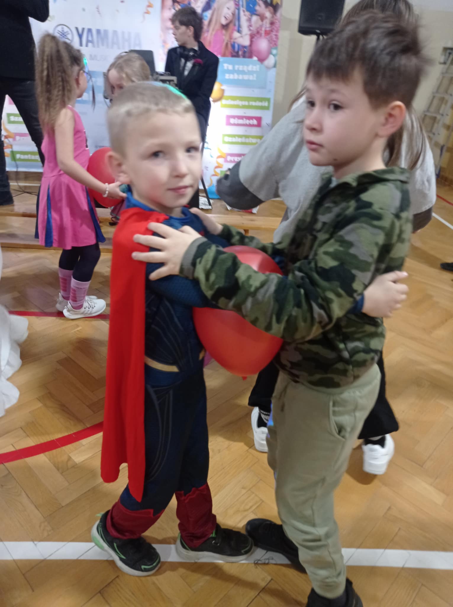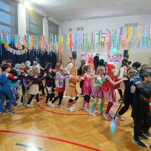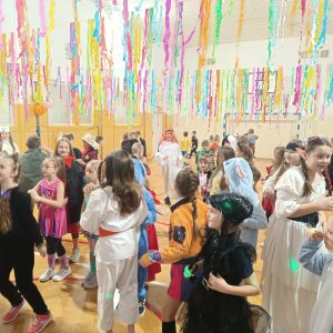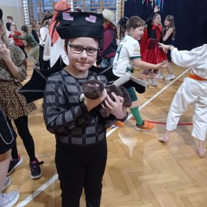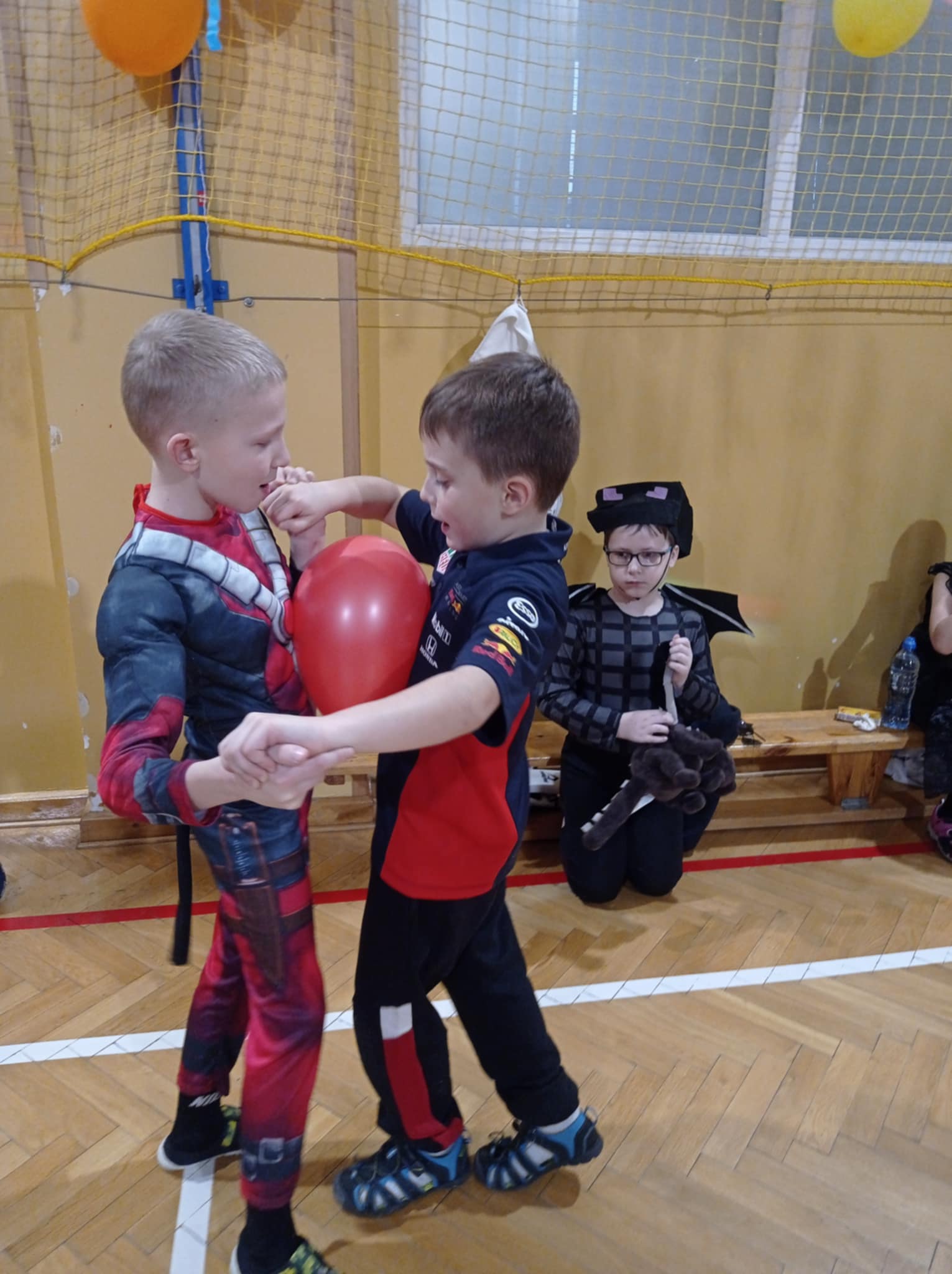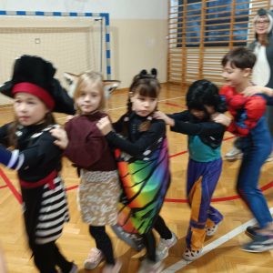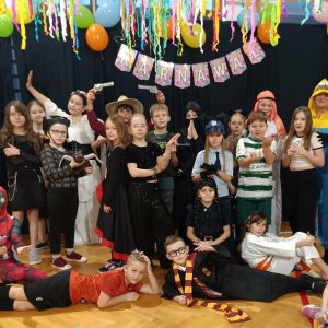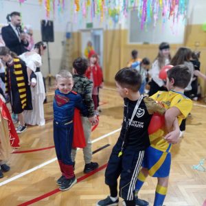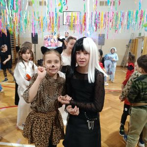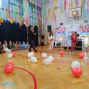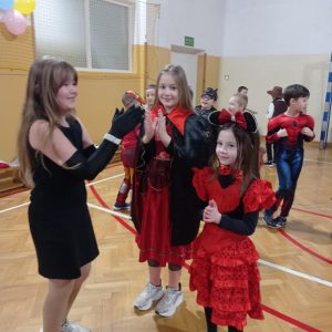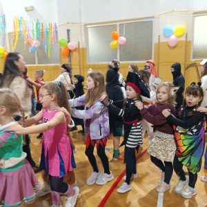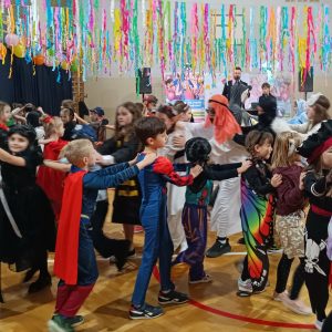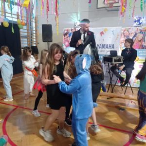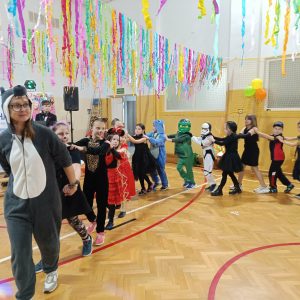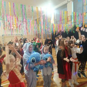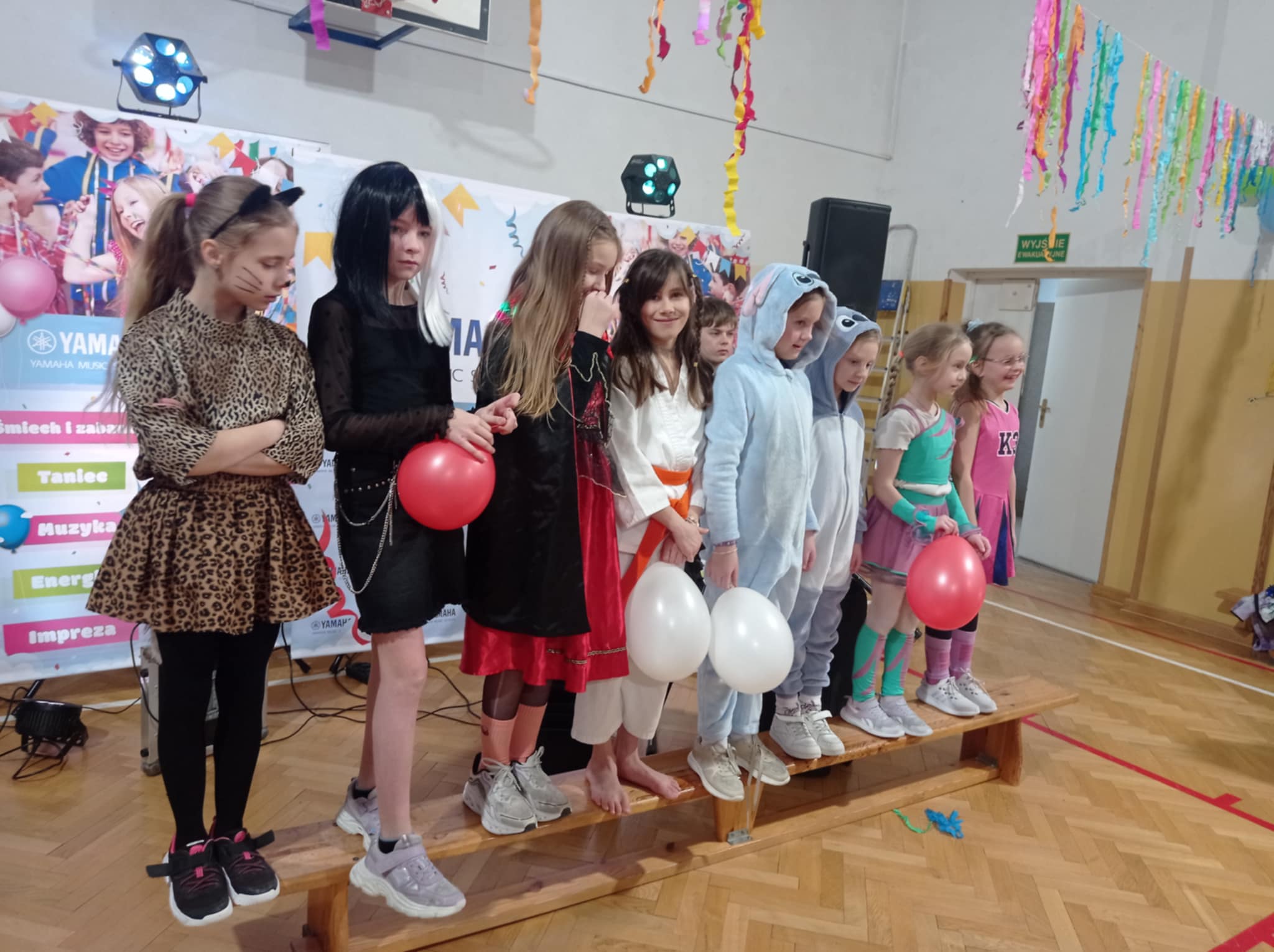 We wtorek, 13 stycznia w naszej szkole odbył się długo oczekiwany bal karnawałowy. Przystrojona sala gimnastyczna zamieniła się w prawdziwą salę balowa, a uczniowie wcielili się w nowe role. Na parkiecie pojawili się bohaterowie znanych bajek i filmów tj. Czerwony Kapturek, Harry Poter, Hermiona, Wednesday, księżniczki, piraci, wróżki, ale również stróże prawa, superbohaterowie i słodkie zwierzaki.  Karnawałowe kreacje zaskakiwały, budził podziw, a nawet przerażenie. Jak przystało na prawdziwy bal, nie zabrakło pląsów i zabaw tanecznych. Były pociągi, korowody, kółeczka i tańce w parach. Dzieci chętnie brały  udział w  konkursach, a zwycięzcy nagradzani byli gromkimi brawami. Ten radosny dzień wszyscy zachowają w pamięci, co najmniej do przyszłego karnawału.