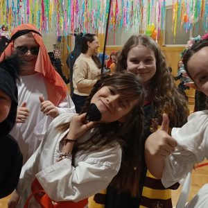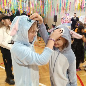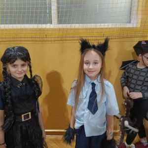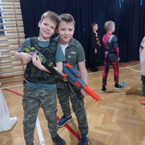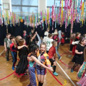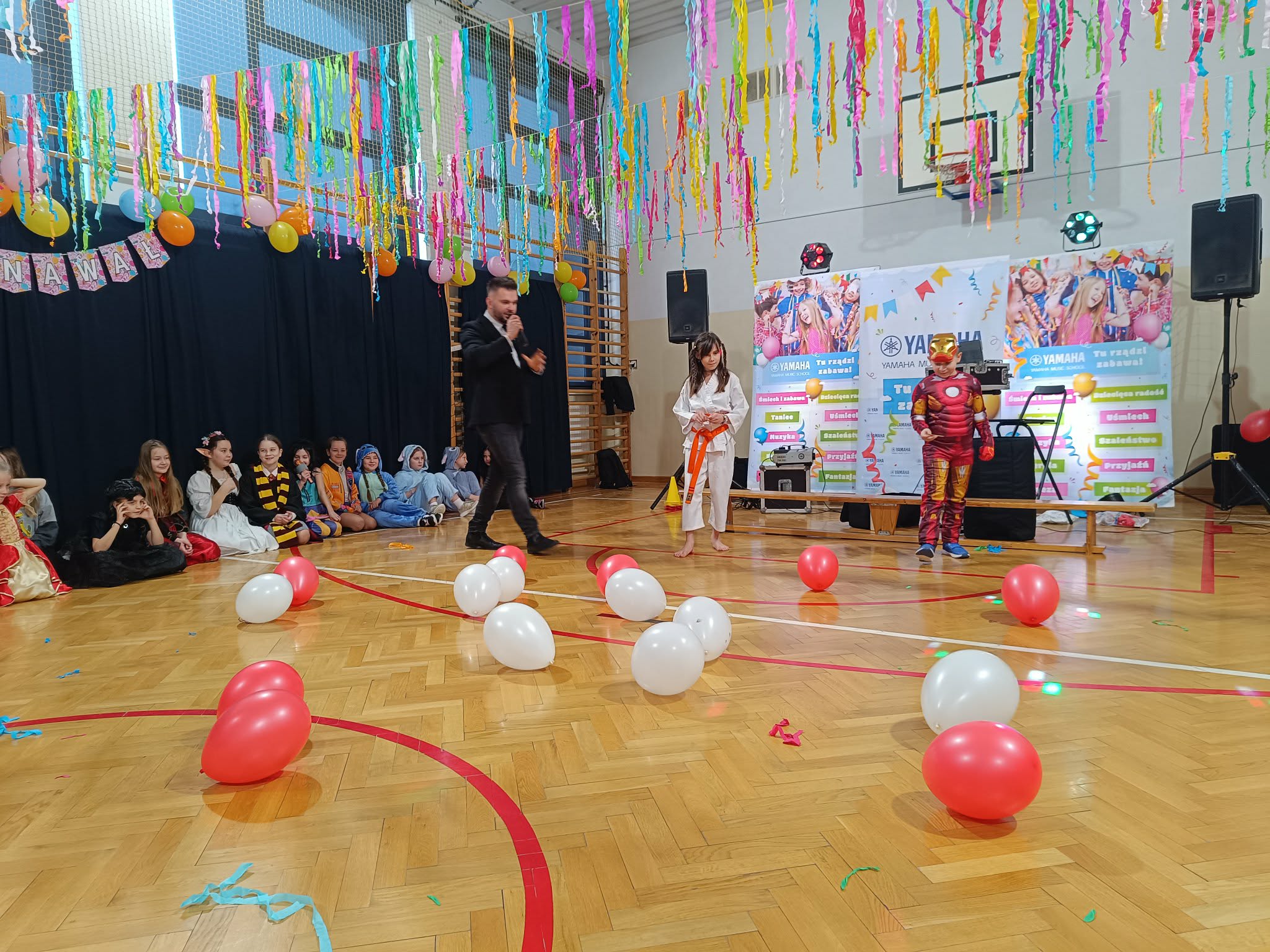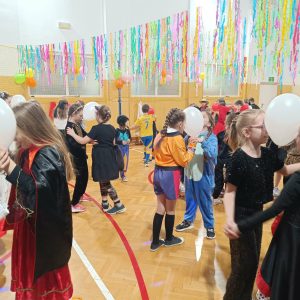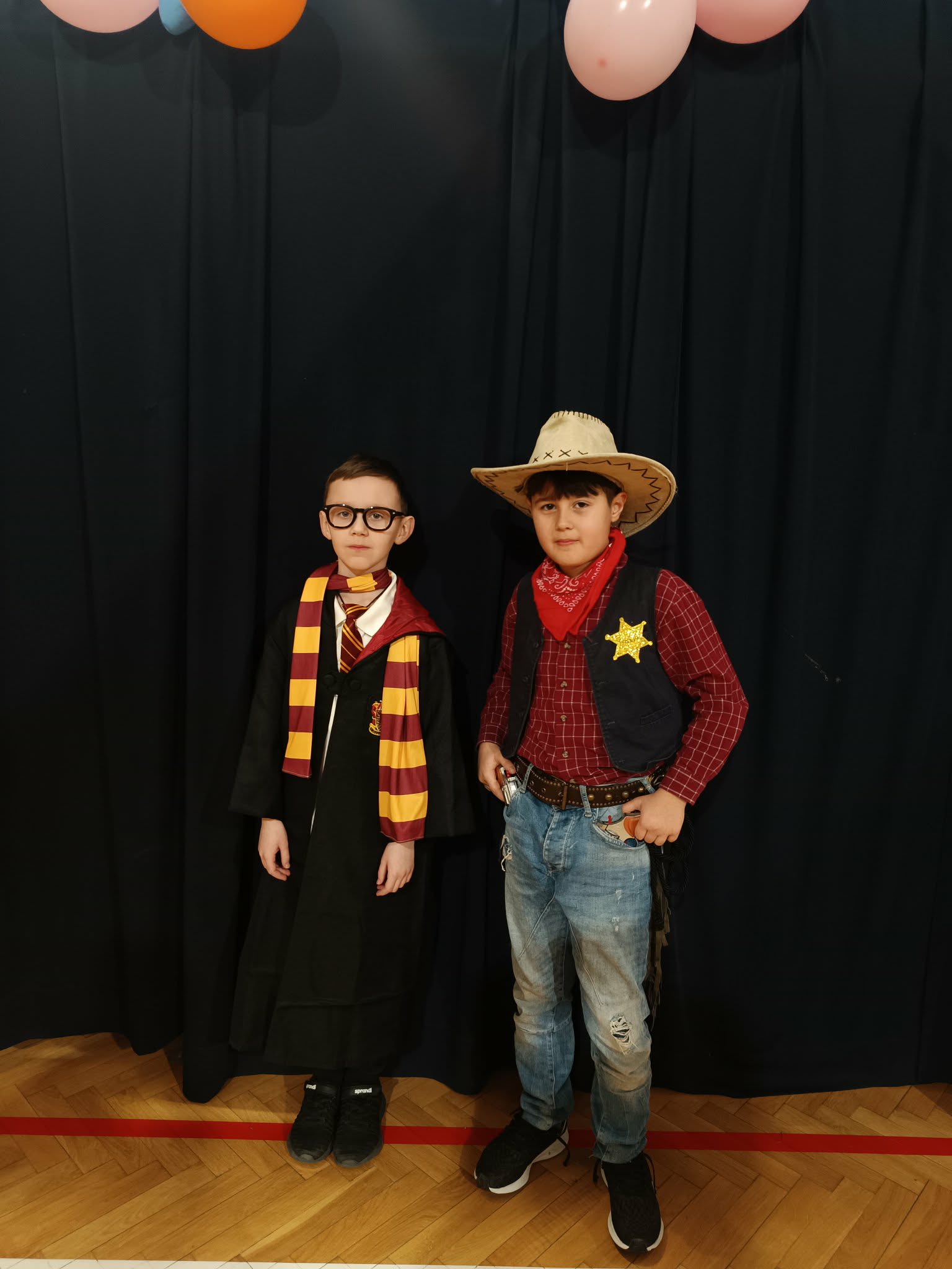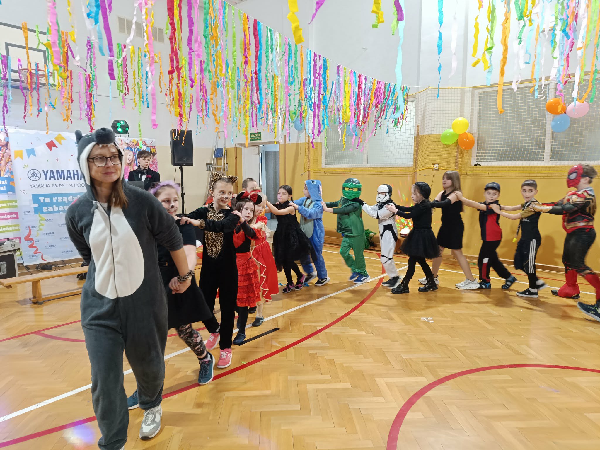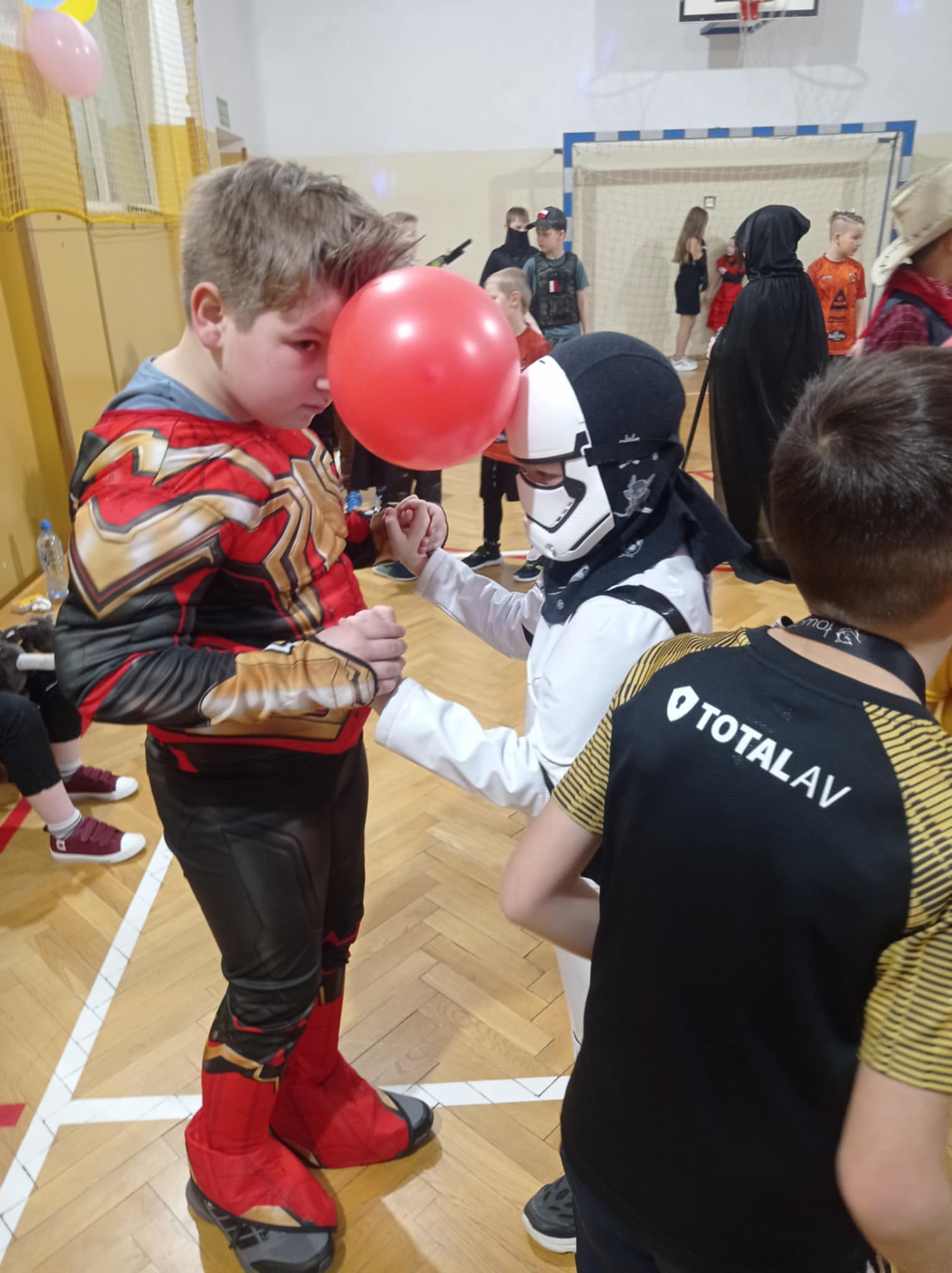 We wtorek, 13 stycznia w naszej szkole odbył się długo oczekiwany bal karnawałowy. Przystrojona sala gimnastyczna zamieniła się w prawdziwą salę balowa, a uczniowie wcielili się w nowe role. Na parkiecie pojawili się bohaterowie znanych bajek i filmów tj. Czerwony Kapturek, Harry Poter, Hermiona, Wednesday, księżniczki, piraci, wróżki, ale również stróże prawa, superbohaterowie i słodkie zwierzaki.  Karnawałowe kreacje zaskakiwały, budził podziw, a nawet przerażenie. Jak przystało na prawdziwy bal, nie zabrakło pląsów i zabaw tanecznych. Były pociągi, korowody, kółeczka i tańce w parach. Dzieci chętnie brały  udział w  konkursach, a zwycięzcy nagradzani byli gromkimi brawami. Ten radosny dzień wszyscy zachowają w pamięci, co najmniej do przyszłego karnawału.