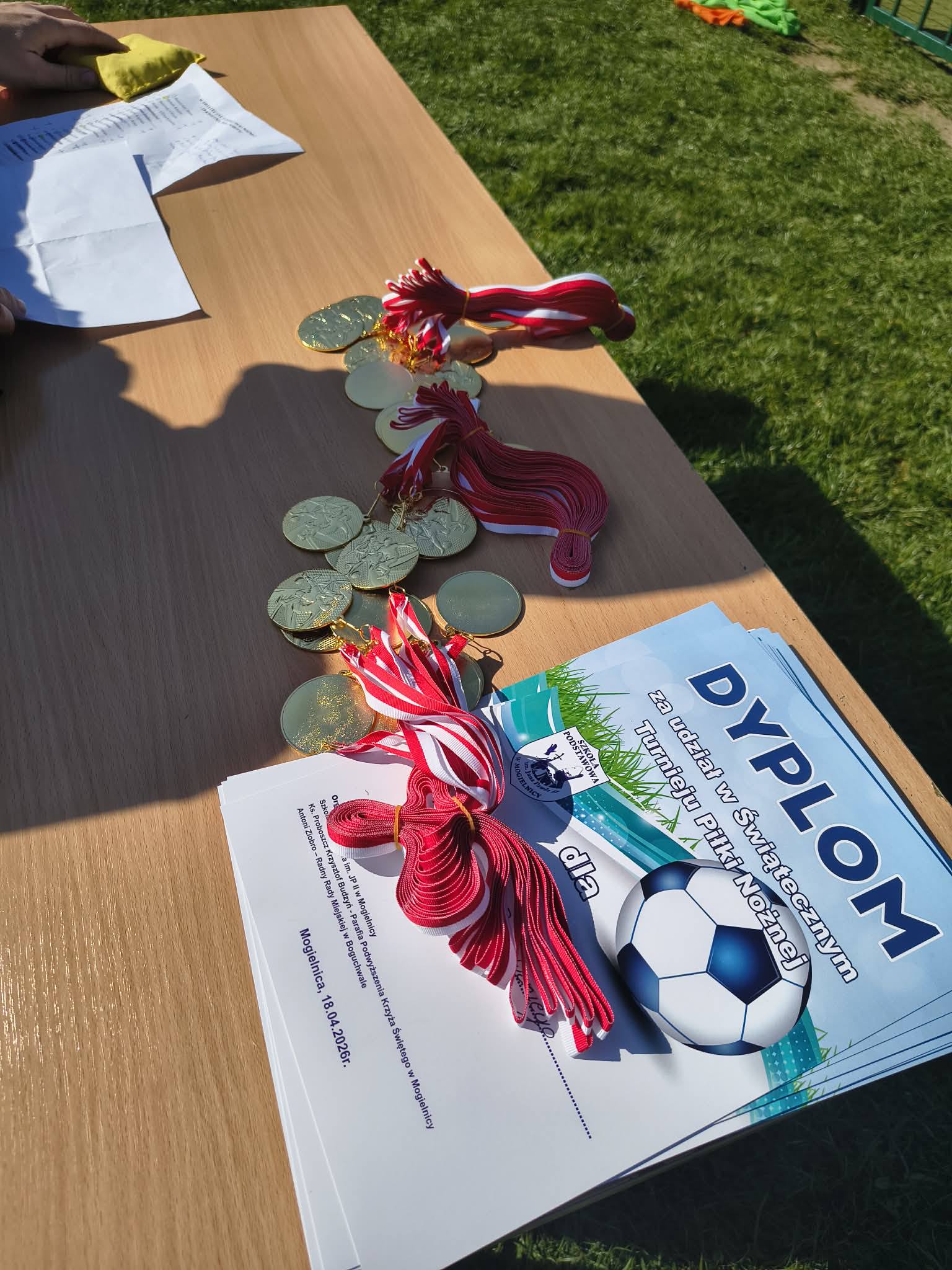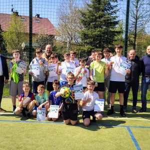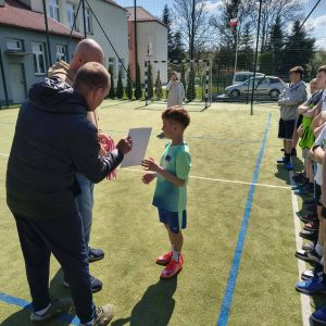 18 kwietnia w sobotę w naszej szkole odbył się tegoroczny Świąteczny Turniej Piłki Nożnej. W zawodach udział wzięło szesnastu zawodników, którzy rywalizowali ze sobą w zespołach 4-osobowych. Po trzygodzinnych zmaganiach i rozegraniu dwunastu „potyczek” ostatecznie zwycięzcami zostali… wszyscy uczniowie, którzy z rąk Dyrektora szkoły Łukasza Bubicza, Radnego Rady Miejskiej w Boguchwale Antoniego Ziobro oraz nauczycieli wychowania fizycznego Bogumiła Wnęka i Arkadiusza Hałonia otrzymali medale oraz pamiątkowe dyplomy.