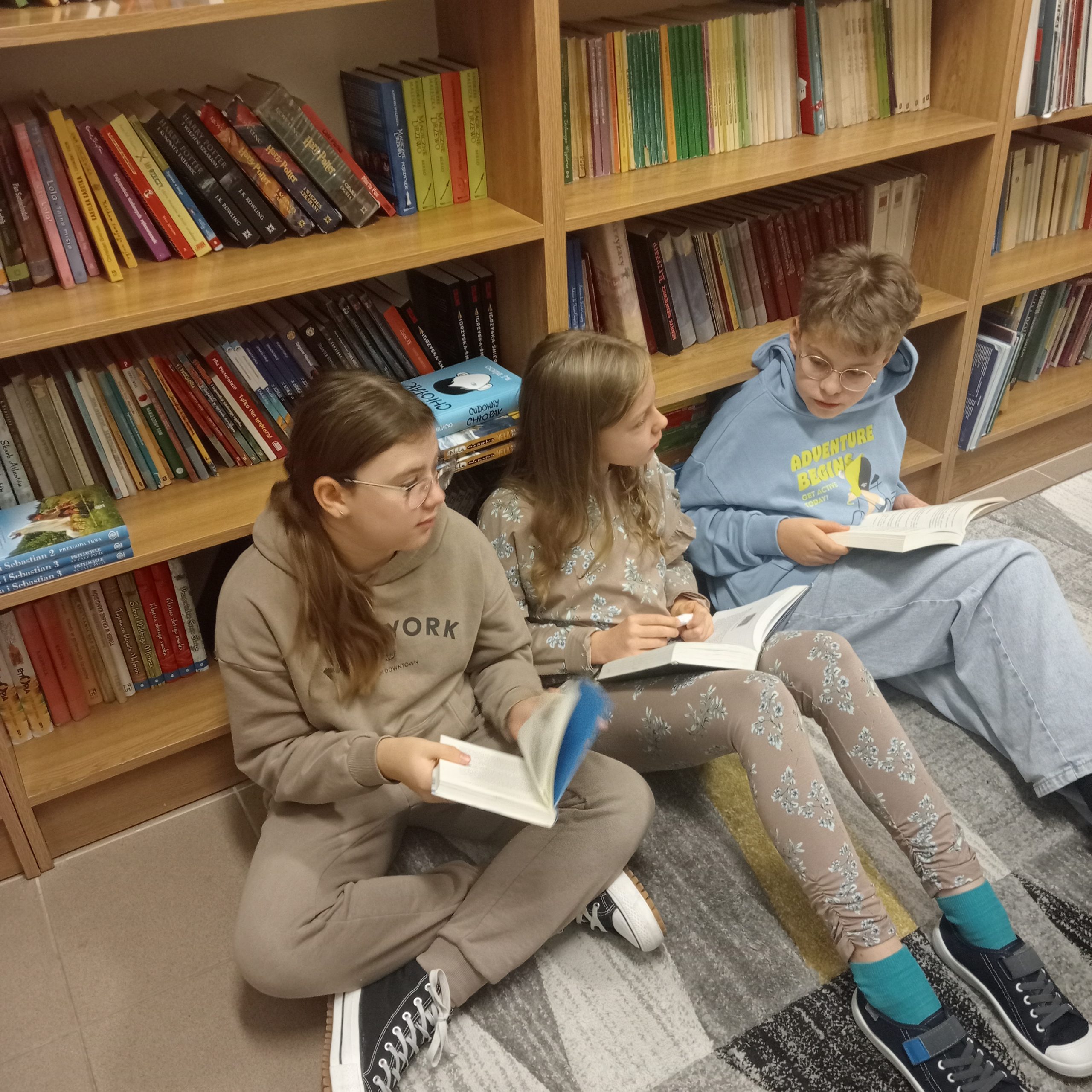 Tydzień przed zajęciami kulinarnymi miała miejsce uczta duchowa. Uczniowie godzinę wychowawczą spędzili przeglądając oraz czytając książki w bibliotece szkolnej. Udaliśmy się tam za sprawą samorządu klasowego. Przedstawiciele klasy wpadli na pomysł, aby właśnie w ten sposób celebrować święto, o którym dowiedzieli się kilka dni wcześniej, a mianowicie, iż październik to Międzynarodowy Miesiąc Bibliotek Szkolnych.