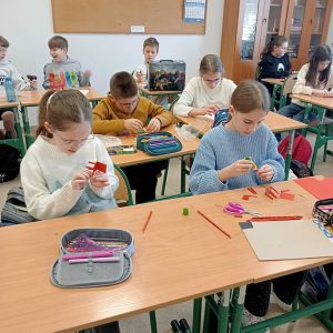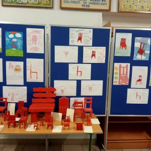 Czy zwykły mebel może odmienić czyjeś życie i spełniać najskrytsze życzenia? Uczniowie klas czwartych udowodnili, że tak! Po omówieniu powieści Andrzeja Maleszki „Magiczne drzewo. Czerwone krzesło”, czwartoklasiści zamienili sale lekcyjne w prawdziwe pracownie artystyczne. Książka, pełna magii i nieoczekiwanych zwrotów akcji, stała się punktem wyjścia do pracy twórczej. Zadaniem uczniów było wykonanie własnej wersji tytułowego magicznego przedmiotu. Wykorzystując różnorodne materiały młodzi konstruktorzy powołali do życia meble, które mogłyby stanąć obok oryginału z powieści. Każde krzesło było inne: drewniane – skonstruowane wspólnie z tatą w domu, zbudowane z klocków, sklejone podczas lekcji klejem do drewna lub klejem na gorąco, a także ulepione z plasteliny. Nie zabrakło również wersji papierowych. Każde krzesło było niepowtarzalne i odzwierciedlało wyobraźnię autora.