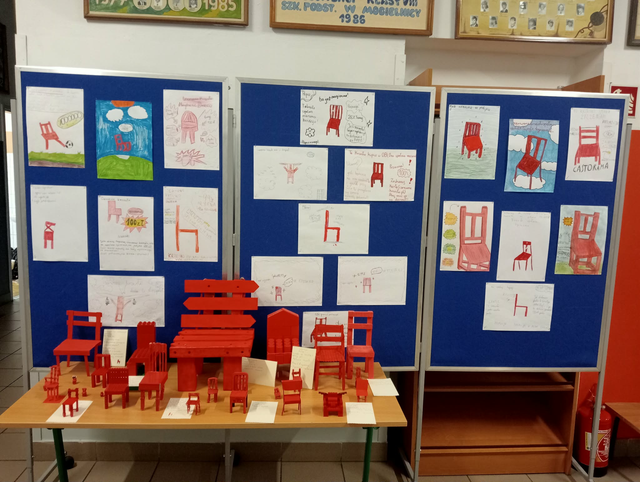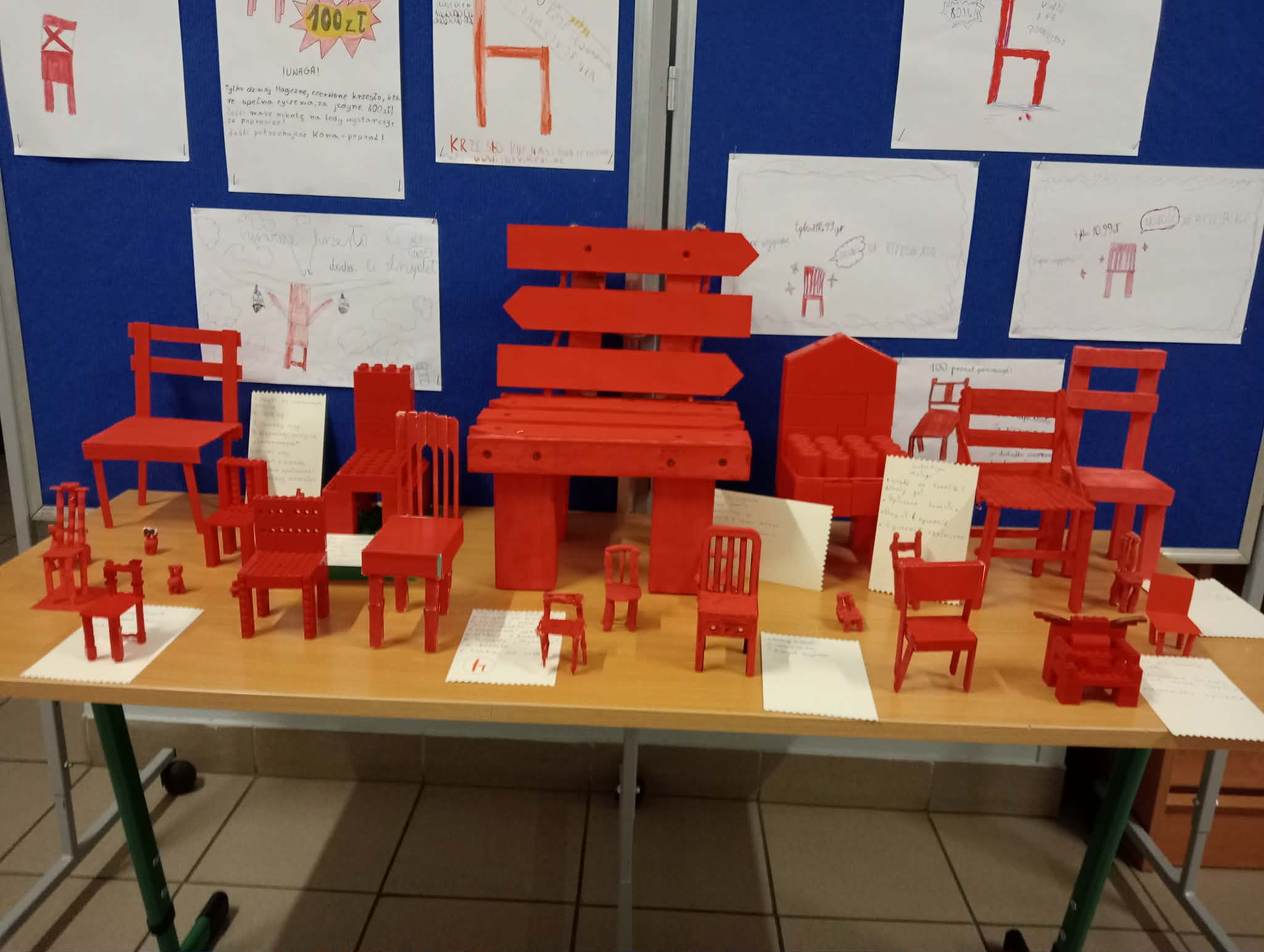 Czy zwykły mebel może odmienić czyjeś życie i spełniać najskrytsze życzenia? Uczniowie klas czwartych udowodnili, że tak! Po omówieniu powieści Andrzeja Maleszki „Magiczne drzewo. Czerwone krzesło”, czwartoklasiści zamienili sale lekcyjne w prawdziwe pracownie artystyczne. Książka, pełna magii i nieoczekiwanych zwrotów akcji, stała się punktem wyjścia do pracy twórczej. Zadaniem uczniów było wykonanie własnej wersji tytułowego magicznego przedmiotu. Wykorzystując różnorodne materiały młodzi konstruktorzy powołali do życia meble, które mogłyby stanąć obok oryginału z powieści. Każde krzesło było inne: drewniane – skonstruowane wspólnie z tatą w domu, zbudowane z klocków, sklejone podczas lekcji klejem do drewna lub klejem na gorąco, a także ulepione z plasteliny. Nie zabrakło również wersji papierowych. Każde krzesło było niepowtarzalne i odzwierciedlało wyobraźnię autora.